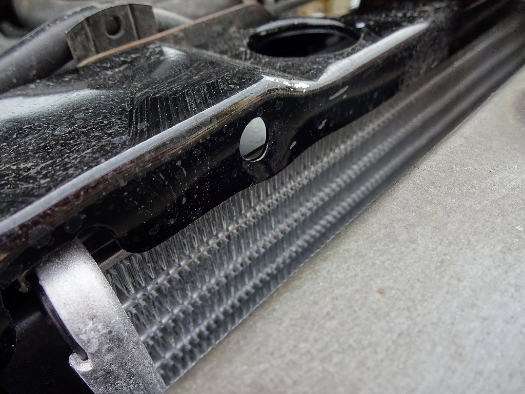 今年の1月にクーラント液の漏れが発覚して修理したスバル・インプレッサが、今度は別の場所からクーラント液が漏れて来たので再修理しました。以前はクーラント液の通るパイプ周りからの漏れだったのですが、今回はラジエターからだったので新品に交換して修理完了です。今回のようなケースは、古いモデルの車では日常茶飯事に起こる可能性のあるパターンです。一箇所が故障したのでそこを新品パーツで修理すると「直した箇所だけが圧力に耐えられるようになるので、今度は他に圧力のかかる弱い場所が壊れる。」と言う、イヤな追いかけっこが始まるのです。お店によりますが、この類の故障が起きた時に「冷却系が壊れたなら、冷却系をすべて交換する。」と言う方法を提案するお店もあれば、当店のように「とりあえず壊れた箇所だけを直して、次に壊れたらまた修理。」と言う方法を提案するお店もあります。当然当店も壊れた箇所を直す時に、一緒に交換出来るパーツはなるべく新品に交換をオススメしていますが、「冷却系が壊れたから冷却系すべて修理。」と言うのはお客様によっては金銭的に不可能な方もいらっしゃいますので、基本的には「壊れた箇所だけを修理する。」と言うスタイルを取っています。もちろん「怪しい部分をすべて新品に交換!」と言うのが1番良い事は良いのですが、そんな事を言っていたら古い車は全交換になってしまいます。そんな新車をパーツのみで組み上げるような事が出来る方はほぼいないので、「壊れた箇所から順番に直しましょう。」と言うスタイルなのです。もちろん結果的にはどちらの方法も同じような時期に同じパーツを交換する事になるのですが、それでも支払い金額が数ヶ月違うと言うのは重要な事です。当然ですが、「あまり車を預けている時間が無いので、可能性のある場所はすべて一気に直してしまいたい!」と言う方には同時にすべて修理する事も可能ですので、修理内容説明のお電話の際にでもお申し付け下さい。