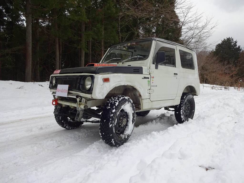 先日ブログでお話した、上記画像のスズキ・ジムニーの販売を開始します。先日から続く大雪の影響で、販売用の写真撮影等がまったく出来ない状態なので、まだ広告等には掲載しません。車両データですが、現在の走行距離は95000kmでメンテナンスはマメにされていた車両です。2015年12月の83448km時にタイミングベルトの交換も終わっていますし、前後社外バンパー、2インチリフトアップ、マフラーガード、社外マフラーにトーヨートランパスのM/T195R16C104/102Qを装備しています。前オーナー様が色々と拘って加工等もしておりますので、興味のある方は必ず現車をご確認下さい。前回のブログでもお伝えしましたが、前オーナー様はオフロード走行等を楽しむ方だったのでボディはお世辞にも程度が良いとは言えません。キズはヘコみは当然の如くございますのでご了承下さい。希望される方は鈑金して仕上げをしてからの納車も可能ですが、個人的にはこのままキズやヤレを味として受け止めて可愛がって下さる方にオススメだと思います。テスト走行のために大雪の中を走行しましたが、「さすがジムニー!」と唸りたくなるレベルの走破性です。先日の大雪は普通の4WD車どころかノーマルのジムニーですら走行出来るか怪しいレベルの深さでしたが、2インチアップとトーヨートランパスのおかげか、当店の車両はまったく問題無く走行出来ました。余談ですがトーヨートランパスは重量と悪路走破性、価格のバランスが非常に良いので、指名買いをして行かれるお客様が多いタイヤの1つです。ぜひご自身でこの性能を味わってみて頂けたらと思います。今回の車両のお問い合わせや現車確認予約は0427808263までお電話でお願いします。電話は24時間受け付けておりますのでお気軽にどうぞ!