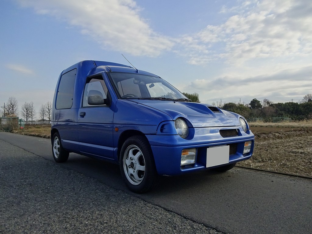 今回も当店に相応しい超希少車、スズキ・アルト・ハッスルが入庫しました!近日中に広告に掲載される予定ですが、ブログをご覧の方だけに先にご紹介します。アルト・ハッスルは普通車のフロントと大きな荷箱をつなぎ合わせた、フランス車等では「フルゴネット」と呼ばれるボディ形状をしています。欧州では結構メジャーなボディ形状なのですが日本ではほとんど需要が無かったらしく、アルト・ハッスル以外だと日産・AD-MAXバンくらいしか思い浮かびません。ちなみに三菱・ミニカ・トッポも同じような形状をしておりますが、ボンネットまでは通常車種っぽいのですがルーフからリアのラインがほぼ水平になっているので、個人的にはフルゴネットタイプでは無いと思います。ちなみに今回入庫した固体はブルーにオールペイント済みですので、1992年式とは思えないくらいにキレイな状態です。ボディの状態も良くてMTなので、カスタムベースや拘る方の仕事用等にいかがでしょうか?現状でエンジンの調子は非常に良いので、カスタム等せずにこのままノーマルで乗っても良いと思います。車両重量640kgと言う軽量ボディですので、26年前の車とは思えないくらいキビキビと走ってくれます。こちらの車両は本店展示となっておりますので、現車確認等を希望される方は必ずお電話で来店予約をお願いします。当店の住所は古い土地ですので、ネットやナビで検索しても表示されない事が多いため、お電話で待ち合わせ場所を決めてから当店スタッフがお迎えに上がる形となりますのでご了承下さい。
