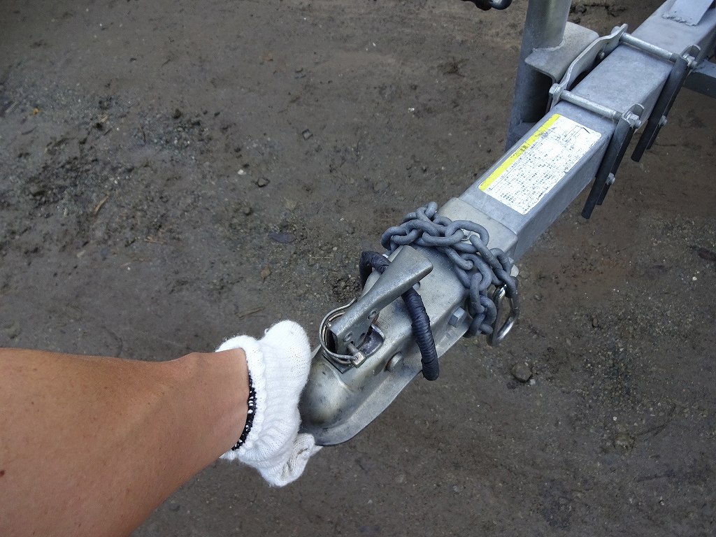 さて、まったく人の言う事を聞いてくれないトレーラーも、何回も練習しているうちにだんだん思った方向に動いてくれるようになりました。ポイントは静止状態から一瞬だけトルクを加えてから、ステアリングを行きたい方向と逆に切る事のようです。ちなみにトレーラーに角度ついた状態でそのままバックしていると、トレーラーが牽引している側の車体にぶつかる事もあるので注意です。しかし、まだまだ狭い場所では上手く行かないので、最近は「トレーラーだけ自力で押す。」と言う最終手段を取っています。最初は全体的な大きさから「絶対人力じゃ動かないだろ・・・」とイメージしてしまっていたのですが、車検証を見ると車両重量:170kgとの記載が!「170kgかぁ・・・あれ?そこらの大型バイクより軽くね!?」と思って押してみたら、簡単に動く事が判明しました。しかも、大型バイクと違って倒れる心配がないのでかなり楽です。もちろんバイク等を積載している場合はそれなりの重量になるので、押す場合は面倒でも積んでいるモノを降ろしてからの方が安全です。トレーラーにもサイドブレーキはありますが、角度が急な坂等では危ないと思いますので必ず積んでいるモノを降ろしてから動かす方が良いと思います。また、前進の際も右左折の際はトレーラーが牽引車両よりも内側のラインを走る事になるので、狭い路地等では牽引車の鼻先を外側に振り気味に曲がると安心です。軽トラックや4トントラック等で車やバイクを輸送した事はありますが、トレーラーのようにリアが独立した動きをする乗り物は初めてなので、色々苦労すると同時に新しい発見があって楽しかったりします。「どうにもならなくなったら自分で押せば大丈夫!」と言う心強い保険が出来たので、これからは気軽に利用して行こうと思います!
