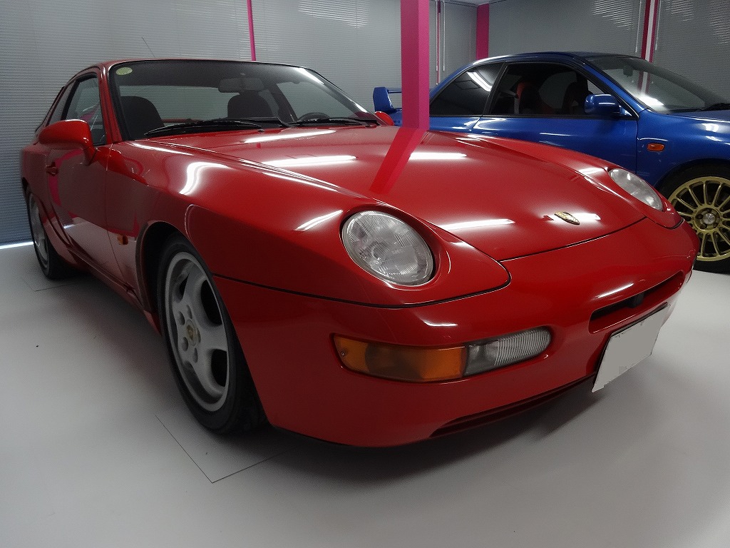新在庫車情報です!ポルシェ・968クラブスポーツが入庫しました!6MT、エアコン、オーディオ、パワステ、パワーウインドウ、ETC、純正シェル同色フルバケットシート、ビッグキャリパー、ドリルドローター純正車高調整、LSD、17インチカップタイプホイール、ワンオフマフラー(純正有り)、レザーインテリア、可変バルブタイミング機構ヴァリオカムエンジン、トランスアスクルと、走りの装備も快適装備も充実な1台です。クラブスポーツはドイツ本国ではエアコンやパワーウインドウと言った装備は設定されていませんでしたが、日本仕様は最初から装備されていたようです。日本は非常に不思議な国で、本当の価値と一般的な相場に大きなズレが生じる車種が多々あります。代表的な車種はロールスロイス、ペントレー全般、FRシリーズのフェラーリ、そしてFRシリーズのポルシェです。これらの車種は非常に高性能でありながらエンジンの搭載位置や一般的なイメージのみで不当とも言える安価で流通しています。しかし、この評価は日本だけで海外では日本とは比べモノにならないくらいの高値で取引されています。そのため近年では海外のブローカーが日本のこう言う車種を買い漁ると言う現象まで起きています。968はトランスアスクルによるほぼ理想的な前後重量配分で「ベストバランスポルシェ」と言われるまでの走行性能を持ち、1気筒あたり750ccと言う、あの世界最大級の排気量を誇るダッジ・ヴァイパー(1気筒あたり800cc。)に迫る大排気量です!この巨大なピストンから発生されるトルクフルな走りを思う存分楽しめます。一応説明しておきますが、大変なのはフルバケットシートの乗り降りくらいで他は全然普通に乗れます。クラッチ等も普通ですし、維持費も日本車のスポーツカーと対して変わりません。エアコンも寒いくらいに効きますし、フルバケットシートは座ってしまえば普通のシートよりも快適です。オーディオももちろん使えますし、やろうと思えば通勤等の普段の足に使う事も可能です。気になる方はぜひ早めの現車確認をオススメします!