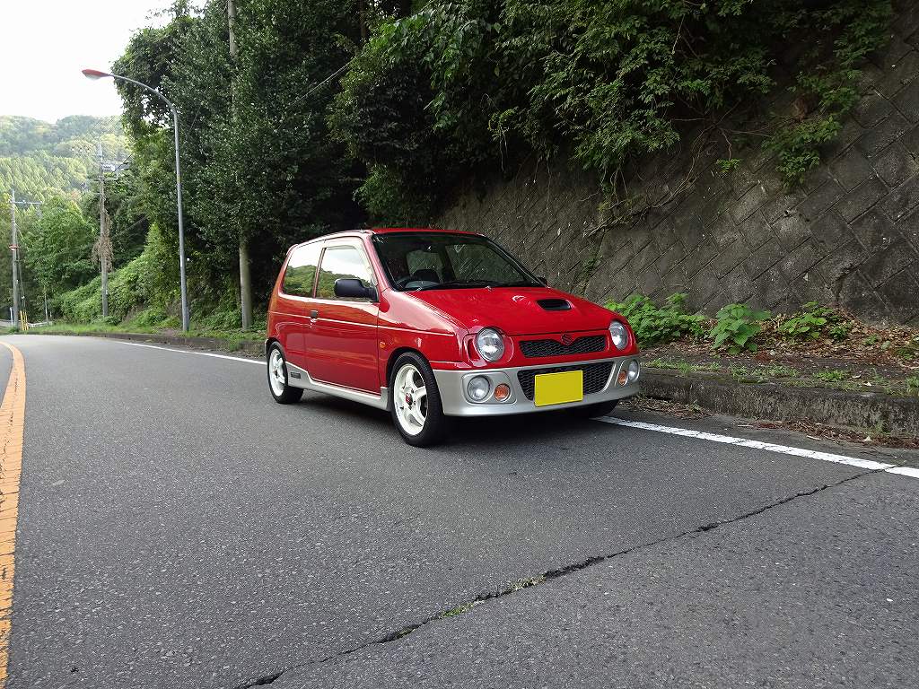 新型が出てもまったく人気の衰えない、スズキ・アルトワークス(HA11)が入庫しました!「アルトワークスってそんなに言う程稀少車?古いけどそこそこ台数あるでしょ?」と思うかもしれませんが、今回の固体はNA仕様なのです!ちなみに後から改造してNAになったのではありません。新車当時、地域限定でごく僅かな台数だけがNAモデルとして生産されたのです。ちなみにあらゆる部分で五感を刺激するキャブレター仕様ですので、エアクリーナーとマフラーを変えるだけでアクセルワークが楽しくなる最高の1台です。アルトワークスはターボモデルは相場が高いので、きちんとした固体を買おうと思うとそれなりの予算が必要となって来ます。そこそこ安めに買える固体もありますがターボグレードは荒く乗られていた固体が多いので、安めに買えるターボグレードはエンジンが酷使されていて状態が悪かったりボディがヤレてしまっている場合がほとんどです。ワインディングの上りは無理ですが、下りならNAのレスポンスと軽い車体を生かしてかなりの速さを誇る事が出来ます。「それなりに楽しくて維持費の安いスポーツモデルが欲しい!」とお考えの方はぜひお問い合わせ下さい。ちなみにボディカラーは人気のレッドでウェッズスポーツの14インチアルミホイール付きです!個人的にアルトワークスは、自身で以前所有していたくらい好きなので、正直販売車両にするかどうか迷っているくらいです。まぁセカンドカーに今はスズキ・ジムニーがあるので両方あっても意味無いですし、どちらかが売れてから考えようと思います。ちなみに走行距離は9万kmと、この年式にしてはかなり少なめです。もちろん5MTでボディや機関の状態も良く、下回りもサビ等はほぼありません。こちらはまだ広告を出していませんので、購入希望者はメールで直接お問い合わせ下さい。