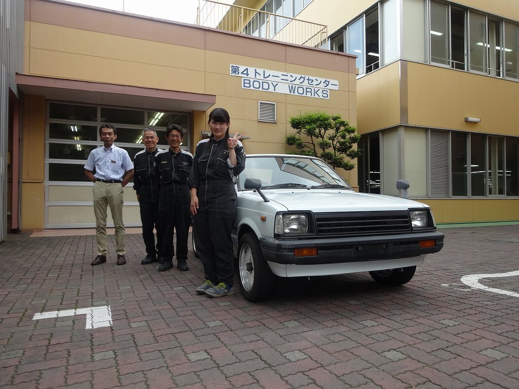 先日、トヨタ東京自動車大学校様にトヨタ・スターレットの納車に行って来ました!何でも来年の1月に開催されるオートサロンに出品するためのベース車を探されていたそうです。日本中のスターレットを検討したけれども当店の在庫が1番状態も良く、安かったのでご成約頂けたとの事でした!当店はこの類の古く、趣味性の高い車は販売先を選ばせて頂くのですが、今回はある意味「最も相応しい販売先。」なのではと思います。スターレットにしてみれば里帰りのような感じではないでしょうか?納車で伺ったのですが、車好きの職員の方々に構内を案内して頂いて最高の時間を過ごさせて頂いました!みなさん、お忙しい中本当にありがとうございました!あの伝説のトヨタ・2000GTの電気自動車等、他では絶対に見られないような車がたくさんあって、個人的にはどっかのテーマパークとかに行くよりも全然楽しかったです。前回のオートサロンに出展されたトヨタ・パブリカ、車好きはぜひ一回見学に行くべきだと思います。たくさんの職員の方々とお話をさせて頂いたのですが、みなさん「本当に車が好きなんだなぁ!」と心から実感出来る方ばかりでした!個人的に「企業としては最も正しいけれども、車好きからするとちょっと寂しい。」と言うトヨタへのイメージがとんでもない間違いだと気が付かされました。今後もぜひ魅力的な車を造って行って頂きたいと思います。しかし、大学内にサーキットからすべての作業ブースまであるとは「さすがトヨタの大学!」と言う感じです。こんなところで勉強、仕事が出来るみなさんが本当に羨ましいです・・・トヨタ東京自動車大学様、今回はご成約誠にありがとうございました!ホームページへの掲載及びオートサロンの取材許可もご快諾頂けて本当に嬉しいです!当店のスターレットがどのような変貌を遂げるのかが今から楽しみです!