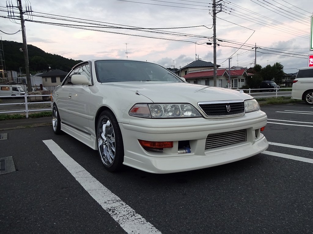 現在でもとんでもない人気を誇る、トヨタ・マークⅡ(JZX100)が入庫する事になりました!グレードはツアラーSですがエンジンとミッションがツアラーVのモノに換装されており、公認も取得済みですので普通に車検も取れます。前置きインタークーラーに19インチアルミホイール、車高調整に社外エアクリーナーに社外マフラーと一通り手の入った固体です!換装された1JZ-GTEエンジンは絶好調で、ターボエンジンのハイパワーで気持ちの良い加速を味合わせてくれます!現在1JZ-GTEエンジンはハイパワーのチューニングにも耐える耐久性の高さから世界中で大人気で、エンジン単体でもとんでもない値段になっている人気ユニットです。乗って頂ければその理由がすぐに理解出来るだけの車に仕上がっておりますので、興味のある方はぜひ現車をご確認下さい。またマークⅡやチェイサーはドリフトのベース車としての人気が非常に高いので、外装はかなりお疲れな車が多いのですがこちらの固体はドリフト等に使用された形跡がほぼありません!どこを見てもキズやヘコみがありませんし、マイナスポイントを探すのが難しいくらいの程度の良さですので、ぜひ本当に好きな方にご購入頂きたいと思います!当然ですが車内も非常にキレイな状態で、前オーナー様のこの車に対する愛情があらゆる部分で感じ取れる状態です。すべての部分をチェックした上での予想ですが、前オーナー様はこの車両を自分好みに仕上げる事に悦びを感じるタイプであって、走る時は極めて一般的な走行しか行っていないモノと思われます。もちろん新しいオーナー様がどのように使うかは本人の自由ですので個人的な願望になりますが、ここまで程度の良いマークⅡはなかなかありませんのでぜひ前オーナー様の意思を継いで、ドリフト等で荒く使うよりも大切に乗って頂ける方にお譲り出来たらと思います。